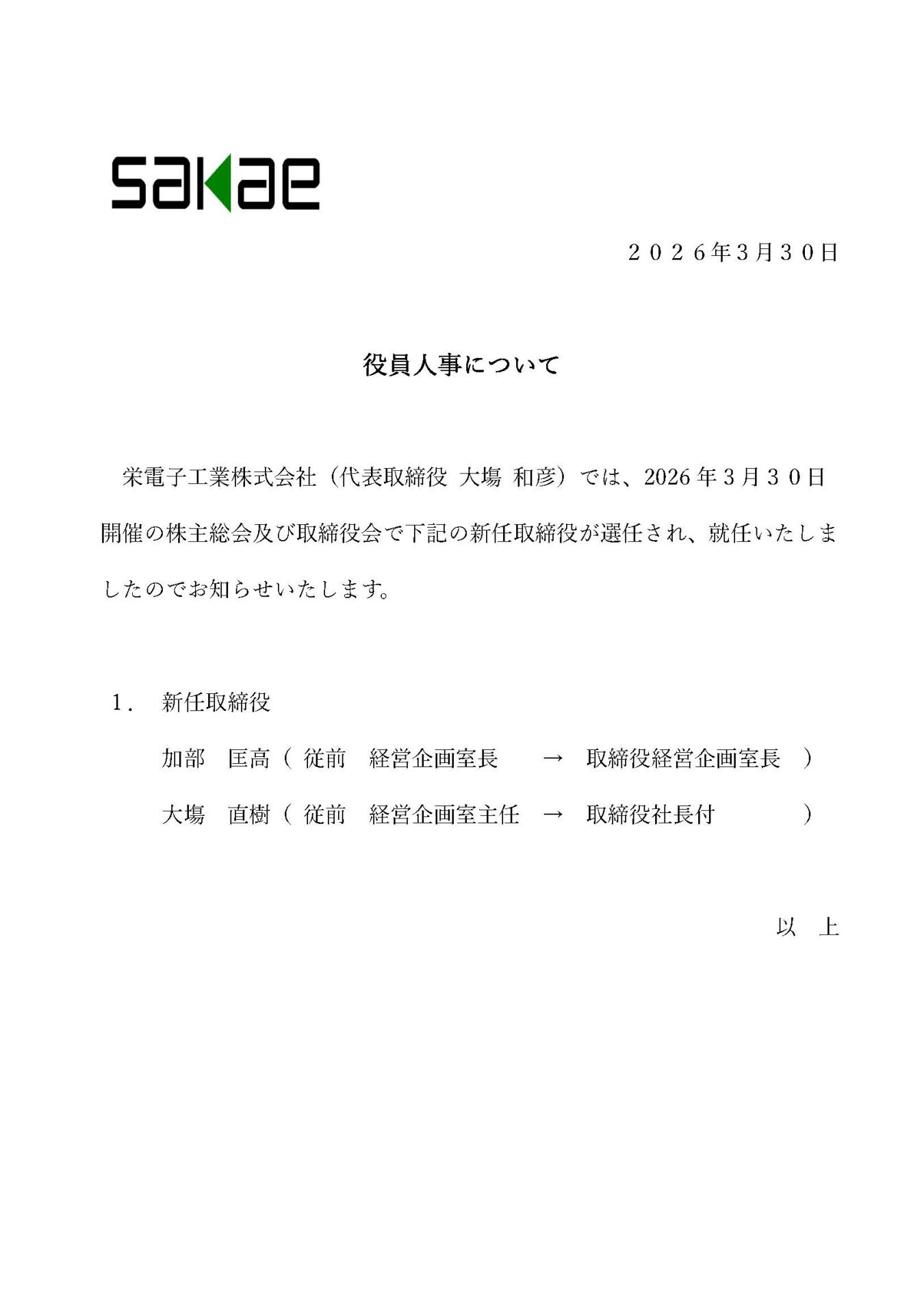 2026年3月30日開催の株主総会及び取締役会で新任取締役が選任され就任いたしました。
